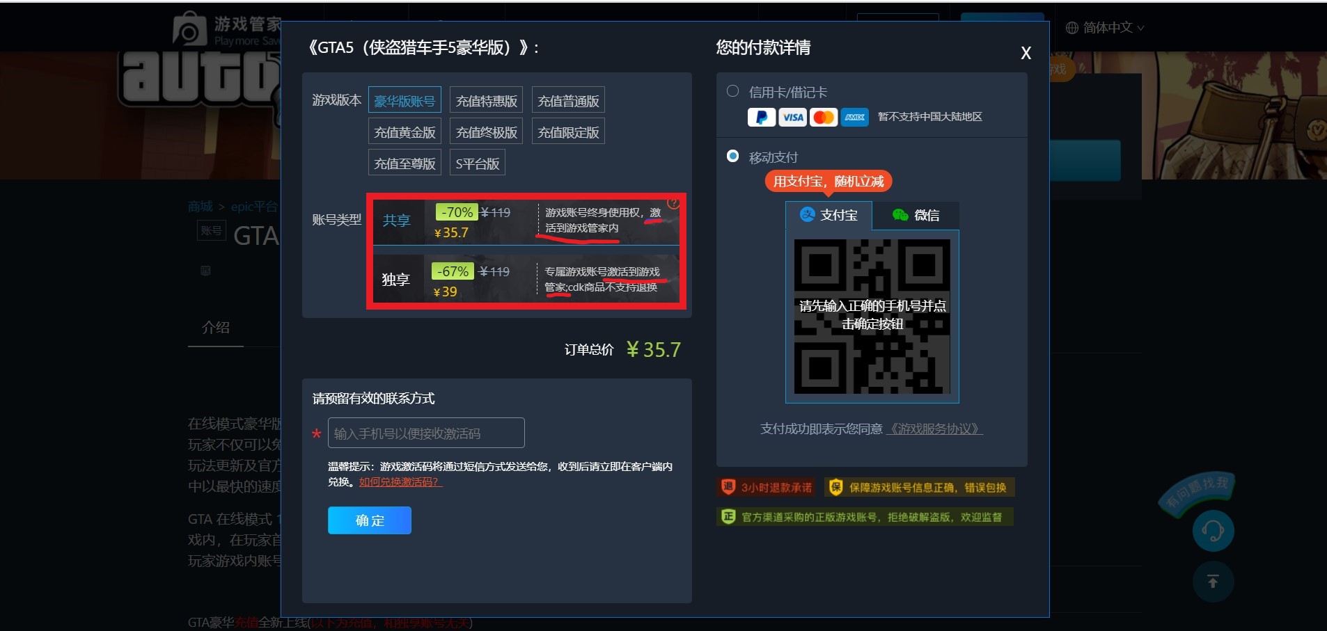 该平台并不出售游戏,而是出租steam,epic等平台的账号。在该平台购买游戏,游戏会激活到游戏管家客户端,并未实质购买游戏。当启动游戏时,该平台会随机使用他们的账号(steam,epic等平台的账号)登陆游戏,玩家在此平台购买的仅是游戏的使用权,每次启动游戏时,玩家被分配到的账号都是随机的,这也就意味着每次玩游戏的账号都是不同的,每次游玩账号内的装备以及游戏存档都是不同的,对游戏体验破坏极大。该平台也推出了独享版,也就是每次都游玩都使用同一个账号,但也难保他们不会将此账号再次出售给他人,共享此账号,毕竟账号在他们手里。