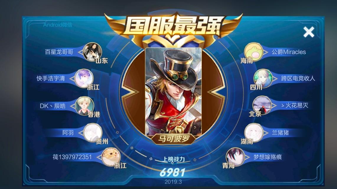 首先要了解大神口中的国服实际上分两种情况:①国服在榜英雄,也就是目前荣耀积分已经达到上榜战力,就会成功登榜,比如马可波罗打到6981分就可以上榜,称为“在榜国服”,此时只有榜单,没有国服称号。