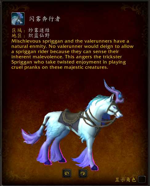 要获取此坐骑,需要在宝藏:驯服的巡林者处(坐标26.35,59.00),击败控制着巡林者的精英希兹格尔 ,而要与该稀有交战必须走过这片叫做纱雾迷结的迷宫,绕路直接到达此坐标无法看到精英。迷宫的线索在(31.51,53.02)处悬挂在树上的卷轴上面。/ way 31.04,54.51 开始迷宫/ way 29.60,55.76 第一个交叉路口 左/东南方向/ way 30.02,57.49 第二个交叉口 右 / 西南方向/ way 29.56,57.91 第三个交叉口 左 /南/ way 29.31,59.10 第四个交叉口 右/ 西北/ way 28.82,58.71 第五个交叉口 前进/西北/way 27.56,57.85 第六个交叉口 左/西 进入最终交战区域,击败希兹格尔后点击旁边不停奔跑的驯服的巡林者即可获得同模型坐骑。