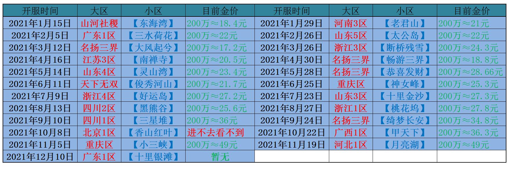 我整理了2021年所有新区目前的金价,大家可以参考一下。北京区的香山红叶太红了,现在挤不进去,看不到金价,有在这个区的朋友,可以在评论区给大家说说香山红叶目前的金价,让进不去的朋友们也了解了解。