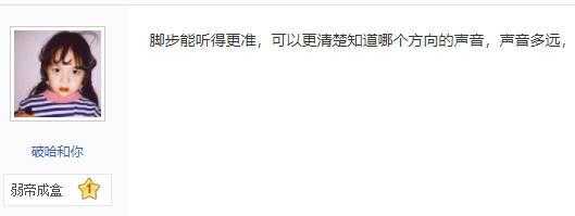 在游戏内的音质还没分为低、高和超高时,听声辨位的虽然不能100%听准对方的位置,但也能做到八九不离十。
