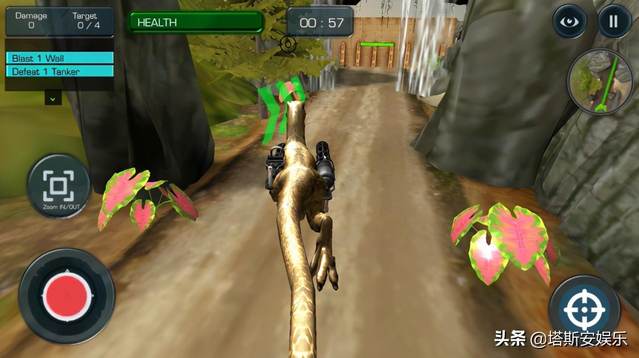 一部脑洞大开的第三人称射击游戏,玩家操控身背加特林的恐龙,按照关卡提示,前进、射击、消灭敌人和破坏障碍。里面还能对抗二战时期的四号坦克,玩法很简单,第一关只要消灭那辆坦克和围墙即可过关。