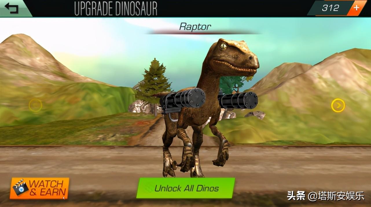 然后会获得积分奖励,可以用这些来解锁下一个关卡,同时越往后期的关卡难度会更高。而玩家能解锁的恐龙也更多,身上携带的重型武器威力也会更大。