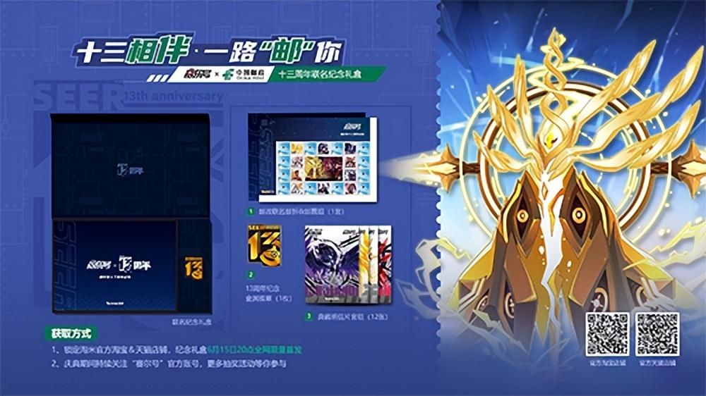 时值《赛尔号》十三周年,首次与中国邮政展开跨界合作,联合推出以“航天”为主题的【赛尔号十三周年联名纪念礼盒】,其中包含“联名邮折&航天主题邮票组”、“13周年纪念金属徽章”以及“典藏明信片套组”三套产品。联名礼盒将于6月15日在淘宝网“淘米网官方周边店”和天猫网“Taomee淘米旗舰店”全网限量首发。除此之外,在《赛尔号》13周年庆典期间,持续关注“赛尔号”各自媒体官方账号,参与抽奖活动也有机会获得联名礼盒,千万不要错过哦!
