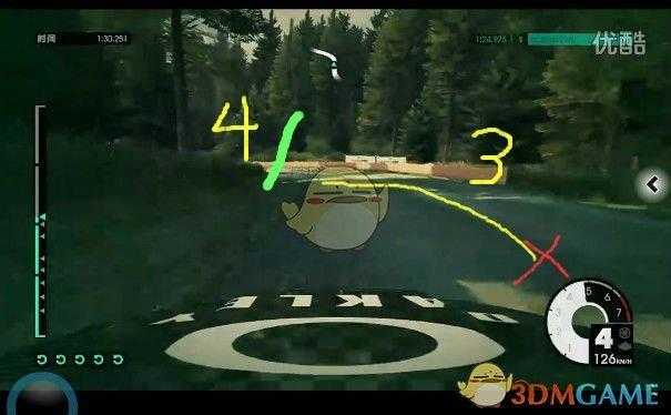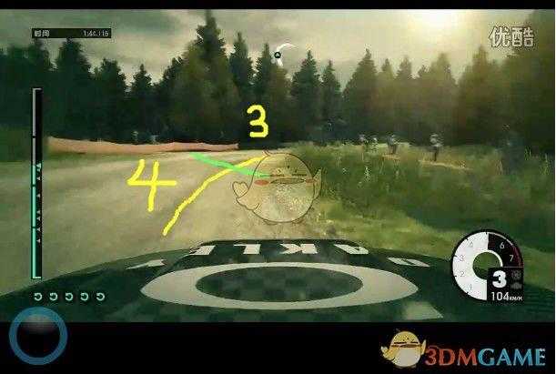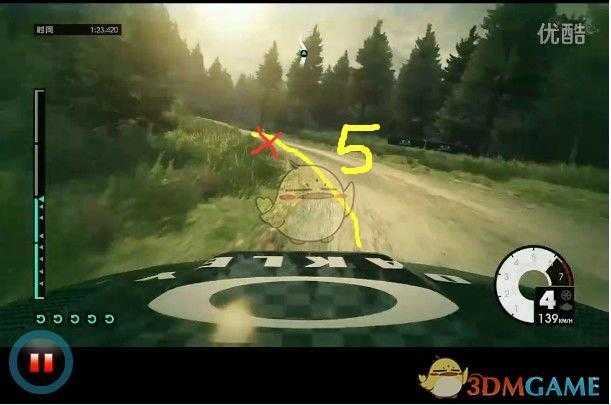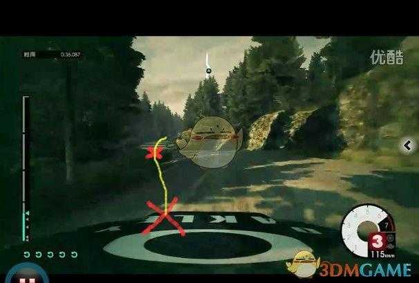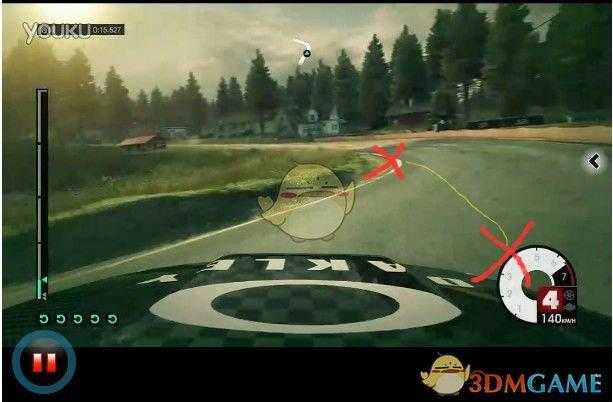 这里是注意, 看双红叉~ 车身角度,沿着黄线切,别太狠~稍稍陷入草地~ 抓好入弯点,后面那小又窄的迷你s弯是可以相对直线过的(此图看不出,请看头上小地图)~~~ 视频不好截图,不然弄个俯视图说明~