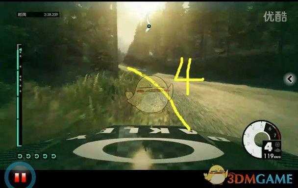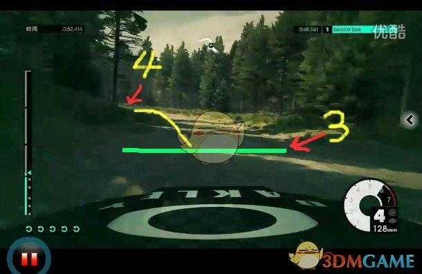 反正注意入弯角度,这个4挡不是指图上车头此刻位置, 再后面点,4挡入此弯
