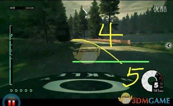 出弯如图~~ 黄线尾端就能上5挡 一路直冲终点,完毕~