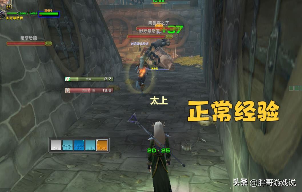这是胖哥在练牧师号的副本过程,打的是影牙城堡自强队。可以看到全队的玩家的等级差距都在5级以内。然而在打不同的小怪时,获得的经验也完全不同。同样类型的精英小怪,有的可以获得98点经验,有的则只能获得16点经验。