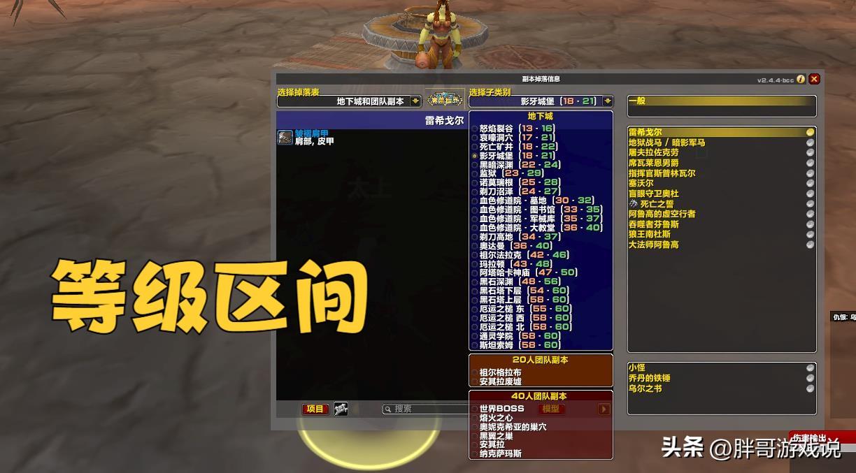 怀旧服副本掉落插件可以显示所有副本的小怪等级区间,比如血色修道院的小怪等级区间为36-40级。那么对于玩家来说,在组队的时候只要不组30级以下和46级以上的角色就可以了。30级和46级的玩家相差16级,却依然可以获得满额经验。当然,30级小号也没办法去打血色修道院。