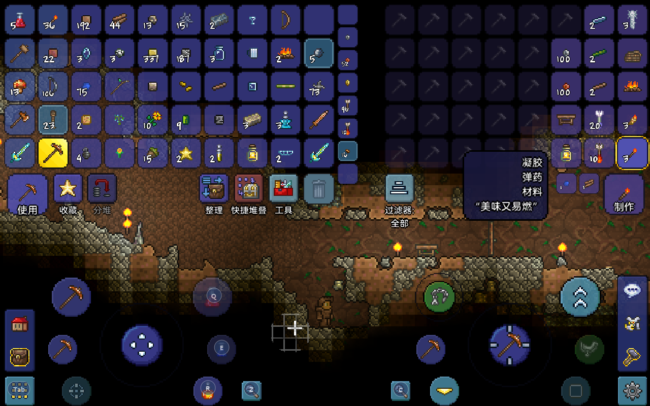 因此在游戏当中玩家应该在一定条件下向下挖取探索地下的矿产,所以在这种情况下一定要做出一些努力才行。所以在准备了一系列装备之后,包括火把以及史莱姆掉落的凝胶,还有安全帽子,也就是从NPC那里购买的帽子。就可以出发了。