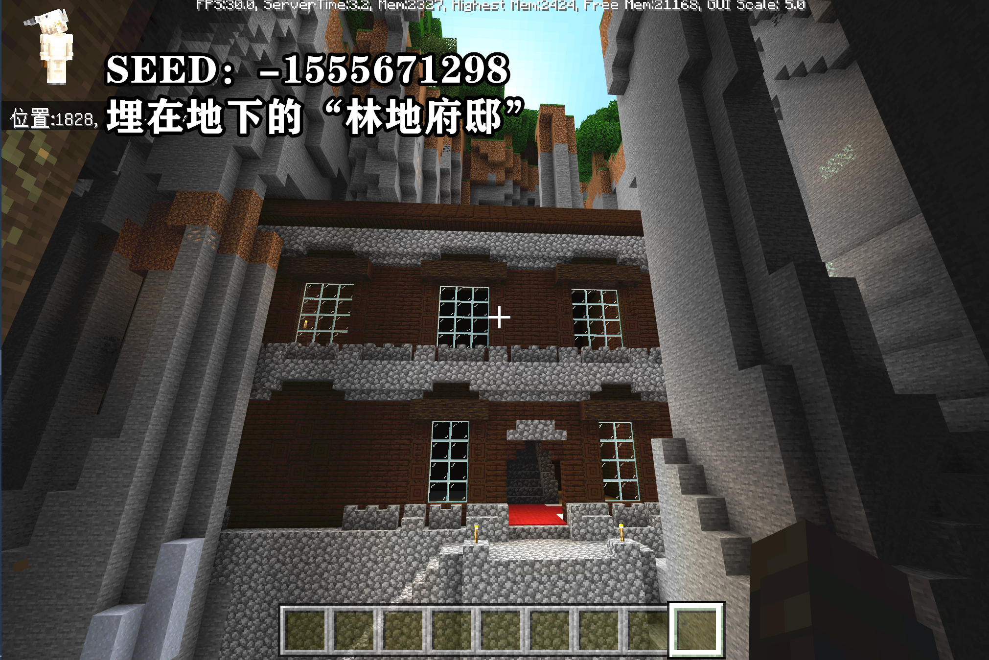 坐标(1804,114,-2100)这一次我们在遥远的千米之外的一片黑森林中,遇见了绝对不可能在《我的世界》1.18之前版本中遇见的罕见景象,即在一片山脉的地底,发现了一座被埋在地下的“林地府邸”!