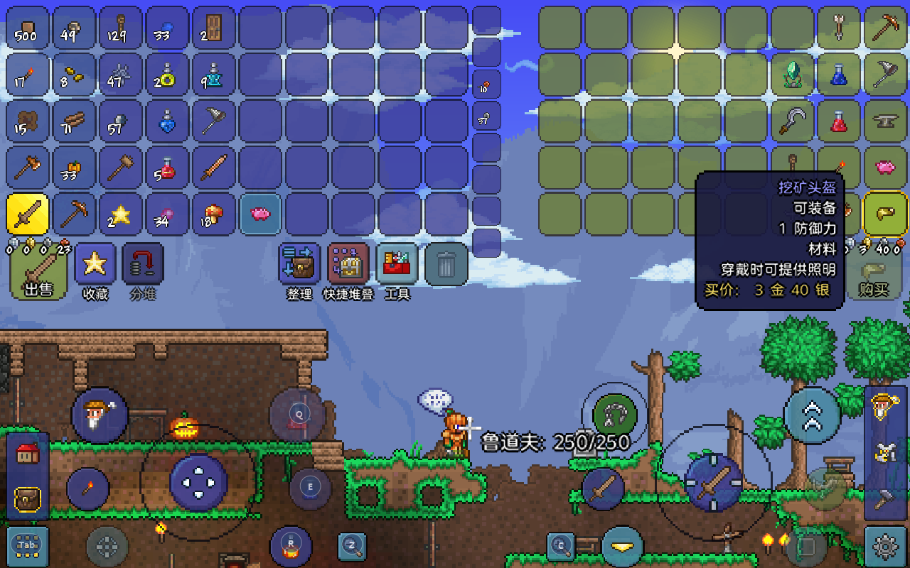 如果身上金币足够多的话,也可以在商人npc处购买个挖矿头盔,实用性很高,当然,火把依然是必需品。