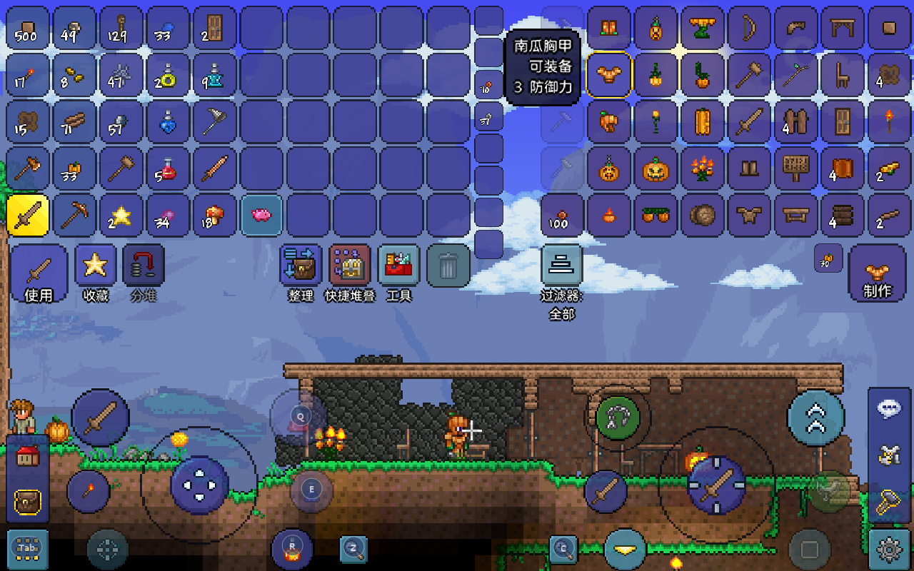最简单的装备是木材制作的木类防具,再好点就是南瓜装备了,建议在地表多采集一些南瓜。另外对于中核或以上玩家,建议先把大部分材料存在箱子或猪猪储蓄罐里,避免死亡时掉落,软核的存下钱就好。