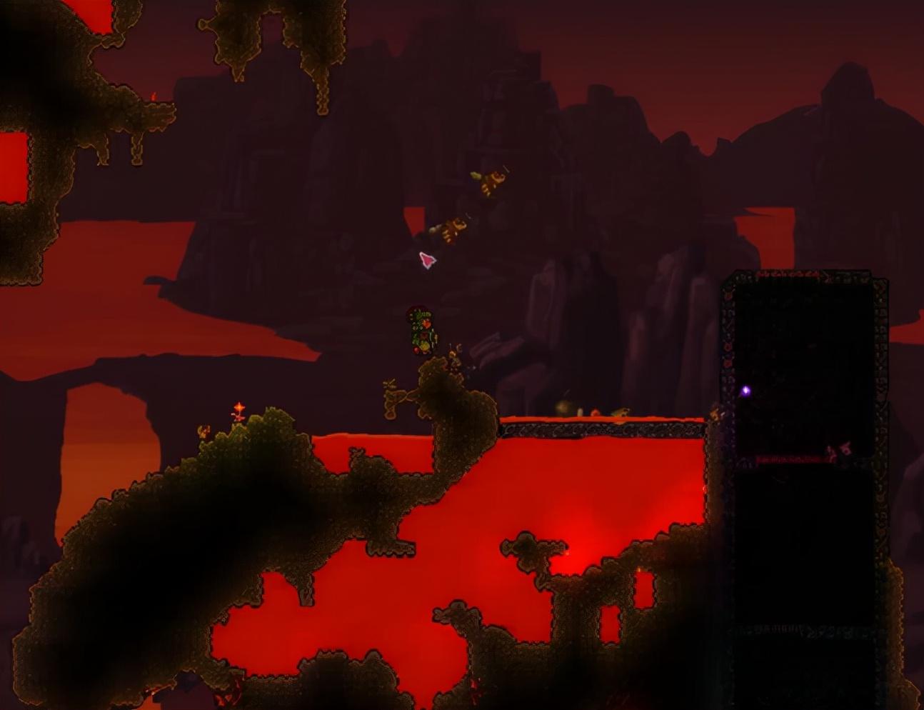 地狱:在地下的最深层是地狱,也是这游戏新手向老手转变的重要区域,要在这里畅行至少需要装备黑曜石头“盔”以及准备好几瓶黑曜石皮肤药剂,接着慢慢挖出狱岩石做熔岩套,这样就能很轻松的抵挡灼热了。