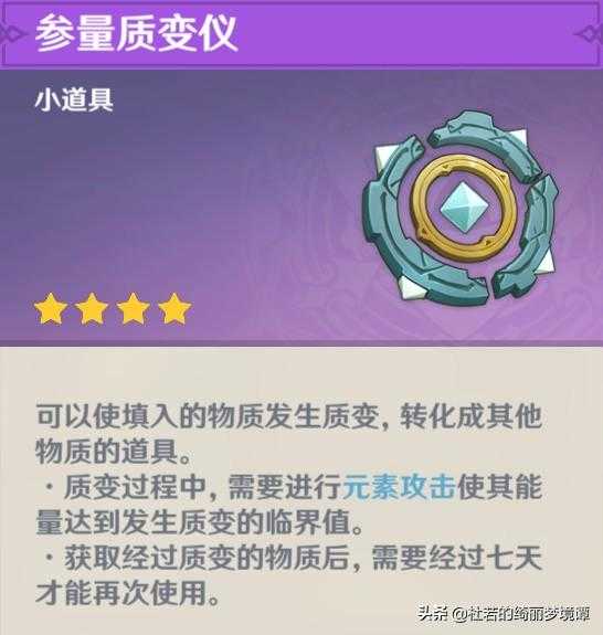 原神中的小道具——参量质变仪,大家都不陌生吧,放入一些材料,通过使用元素力让他们转换成摩拉、经验书、天赋书等更重要的材料。那么,参量质变仪质变是有规律的,不知大家了不了解呢?本次,就让饺子为大家介绍一下其中的规律吧!