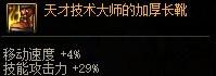 属性描述的文本就是“技能攻击力+XX%”。110版本中,105ss护肩有34%标准技攻,105ss鞋子有29%标准技攻,105ss的其它部位是12%的标准技攻。