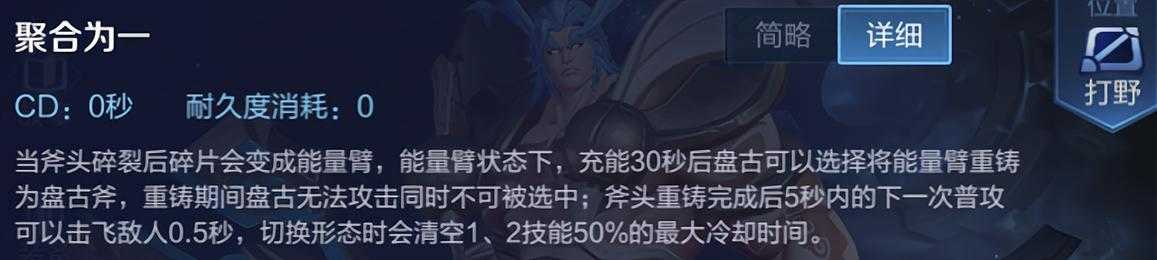 而当盘古变身能量臂形态充能30秒后,盘古就可以主动使用四技能,将能量臂重铸为盘古斧,即变身为盘古斧形态。