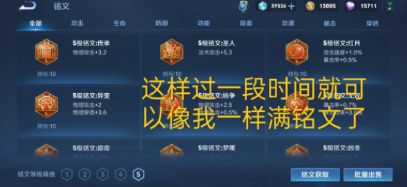 最后过一段时间也可以满级铭文了