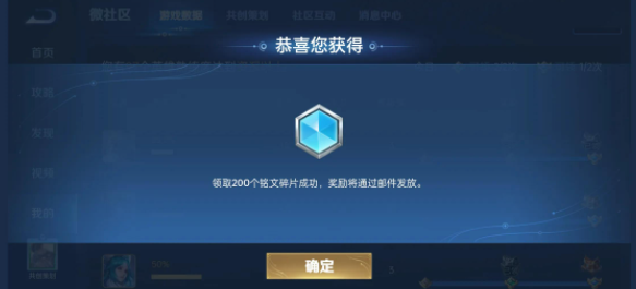 领取过后的铭文碎片会自动发放到玩家的邮箱里面去,记得去领取哦~