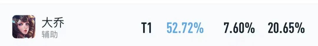 值得一提的是,在赛季初迎来中大幅度降温的大乔,也被迫跌落到T0.5,无论是BP率还是胜率都有明显的下滑,好在大乔的大招改动没有实装,不然,是很有可能降到T1甚至是T2的。