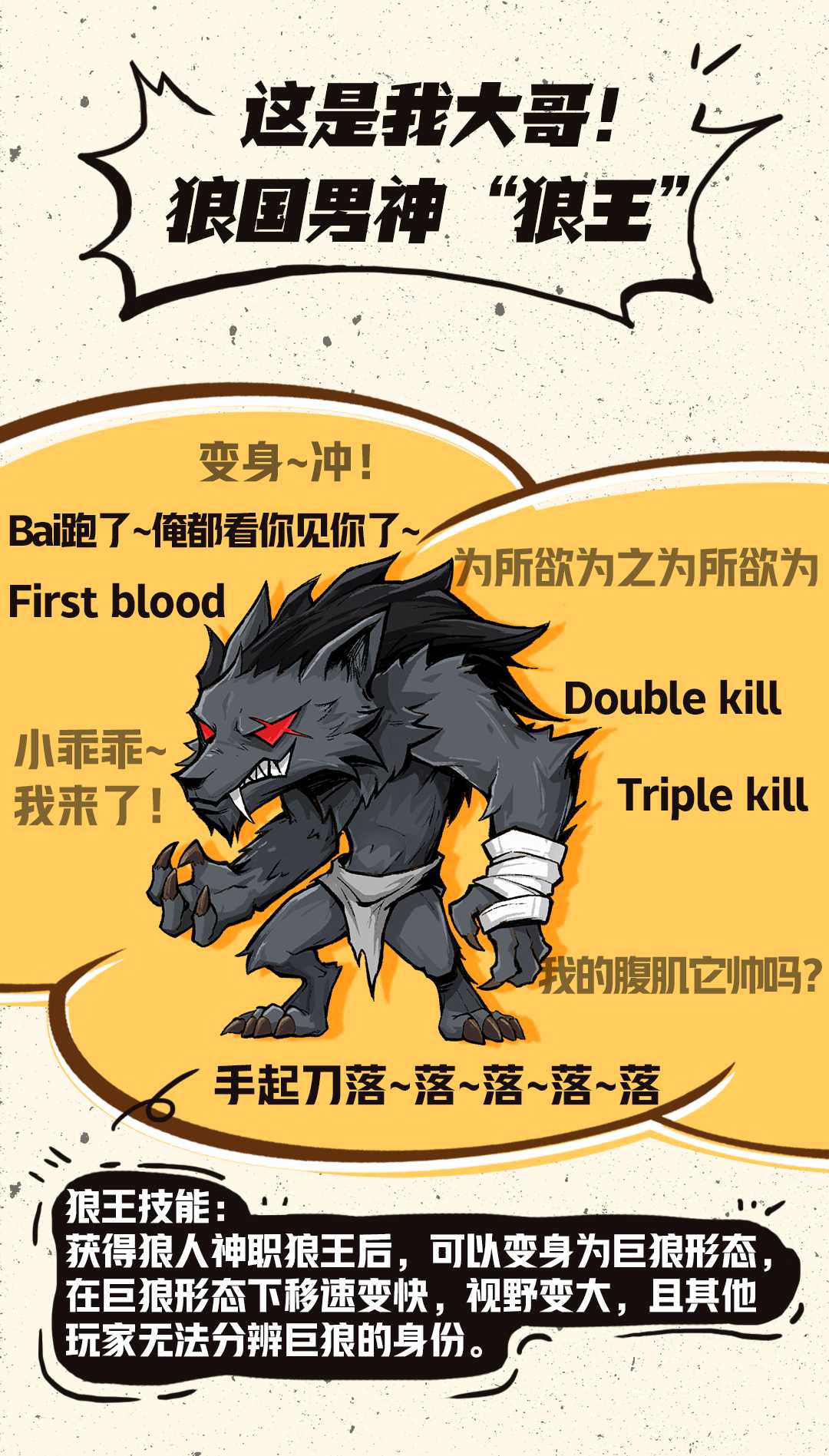 本次新增的两个角色整体上手难度都不算高,但掌握时机和互相配合都很重要。狼王拥有着变身技能,此时虽然他拥有快速移动的能力,但仍然存在狼刀cd,因此在完成击杀后记得迅速转移,等待下次出手的机会。