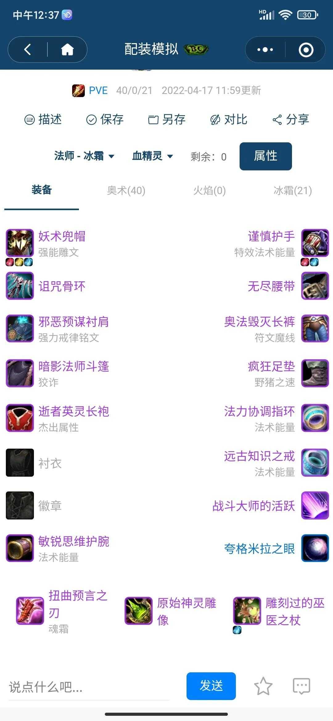 这种天赋对于寒冰箭来说,可以发挥最大值。再看看重点装备搭配。