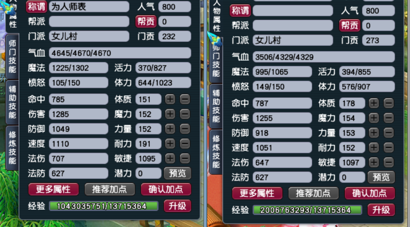 第三阶段贫民5开组合,第一阶段组合宝宝修无脑双20起步。1wdd4女儿基本要求60级的4固伤,4锐步,固伤腰带动物套,武器与头盔6段太阳石。武器430+20敏,衣服25敏,鞋子43敏动物套。宝宝修双15,400速度,1050灵力,高魔高爆法宠,全力宝宝一组。