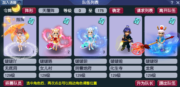 梦幻西游五开阵容搭配是一个可小可大的问题,虽然说只有你砸钱足够多,什么样的阵容都可以玩,但从效率方面来说,阵容的搭配还是有一定的直接关系。因为五个角色需要相辅相成才能轻轻松松把任务挑战完成,否则即便硬件条件上来了也无法提高效率。下面是职业五开牛人总结出了几种五开阵容的最佳搭配,仅针对129级以上的五开,一共有三种阶梯模式任你选择。