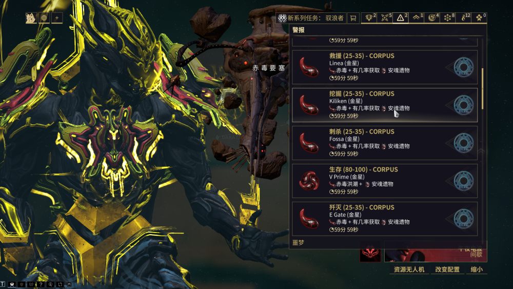 其他8张都可以通过【警报】中的【赤毒虹吸器】,推荐做【80-100】的这个,因为这个必得一个安魂遗物。做完任务之后前往虚空裂缝,找到下面的安魂裂缝。