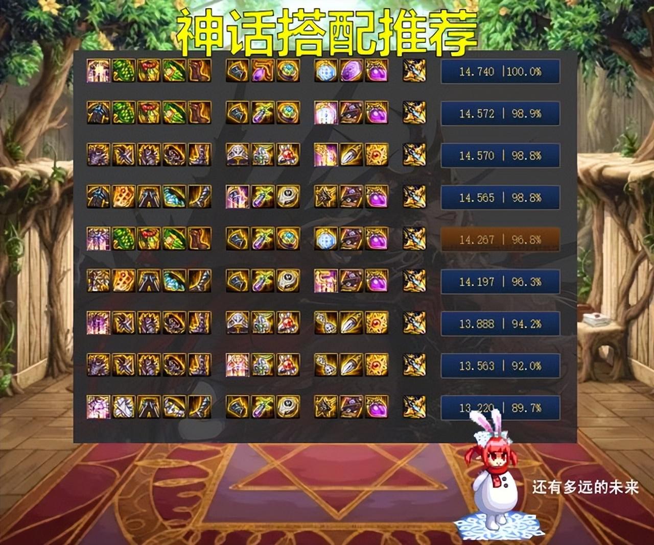 神话装备搭配:(只推荐不排名)不同打造下伤害会不一样