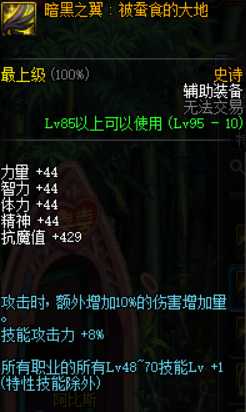 【暗黑之炎 被蚕食的大地】:所属+34,技攻+10%,80-85技能+1