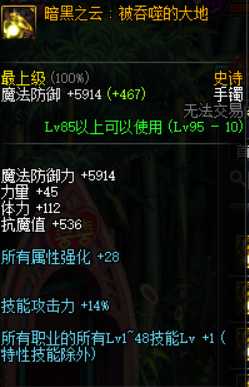 【暗黑之云 被吞噬的大地】:所属+28,技攻+14%,1-48技能+1