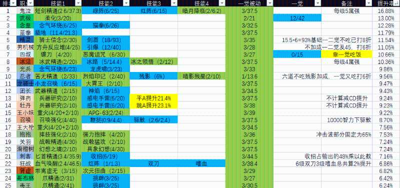 首先我们要看一下自己的职业,对于小技能被动的个数多不多。这里拿鬼泣举例,小技能中对总体伤害有所增幅的像暗月降临,刀魂之卡赞,太刀精通,侵蚀之普利蒙等技能。再者像是双觉被动,可以大幅度提升全技能的伤害,此时可以将鬼泣定位为一个"特殊职业",类似被动多的职业都符合这个特性。