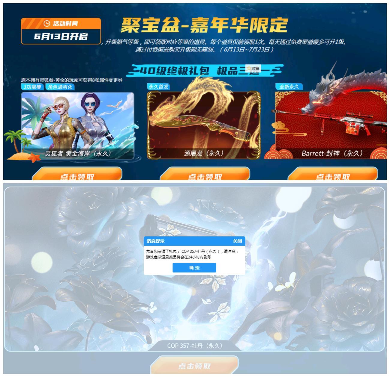 玩家当天游戏1局,即可领取1件全新永久