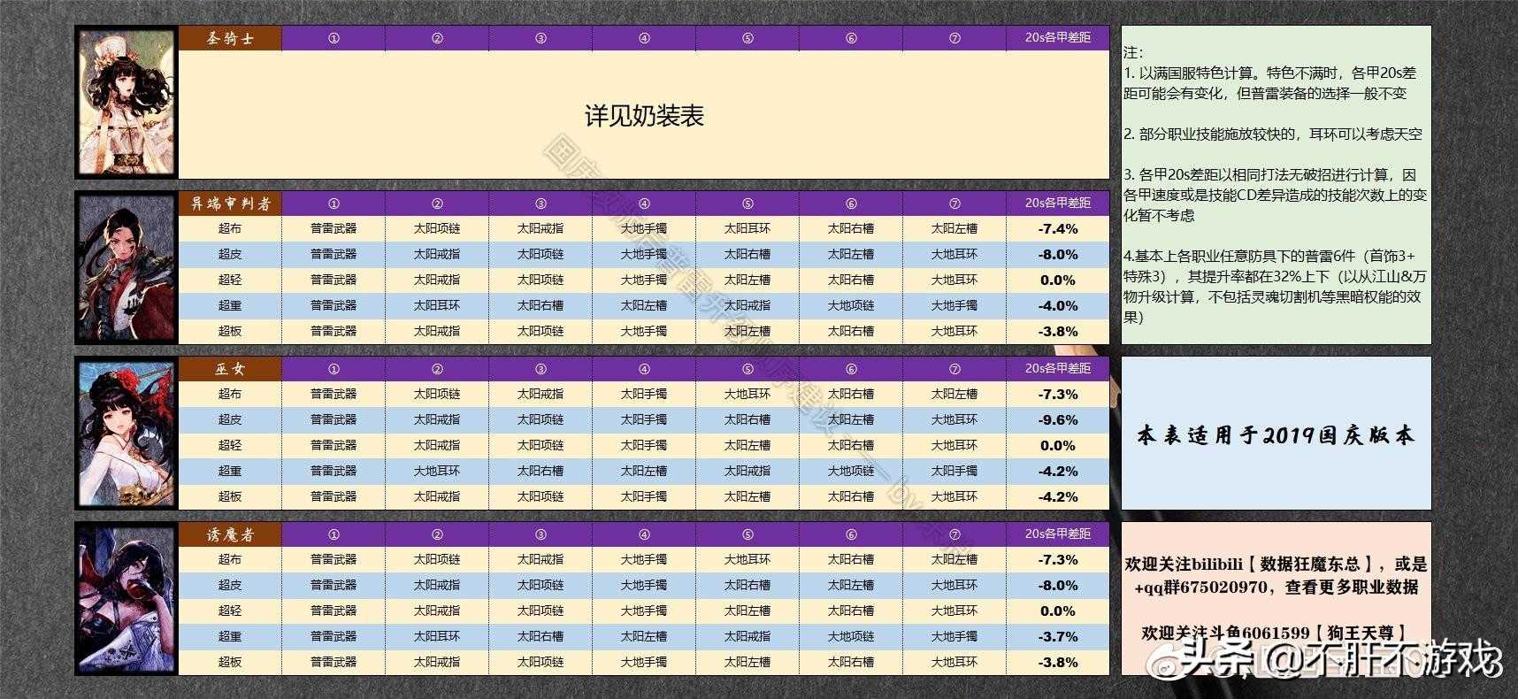 旭旭宝宝前两天在微博上分享了一套全职业各甲普雷装备最佳选择的表格。普雷装备制作进度过半,你的选择对了吗?