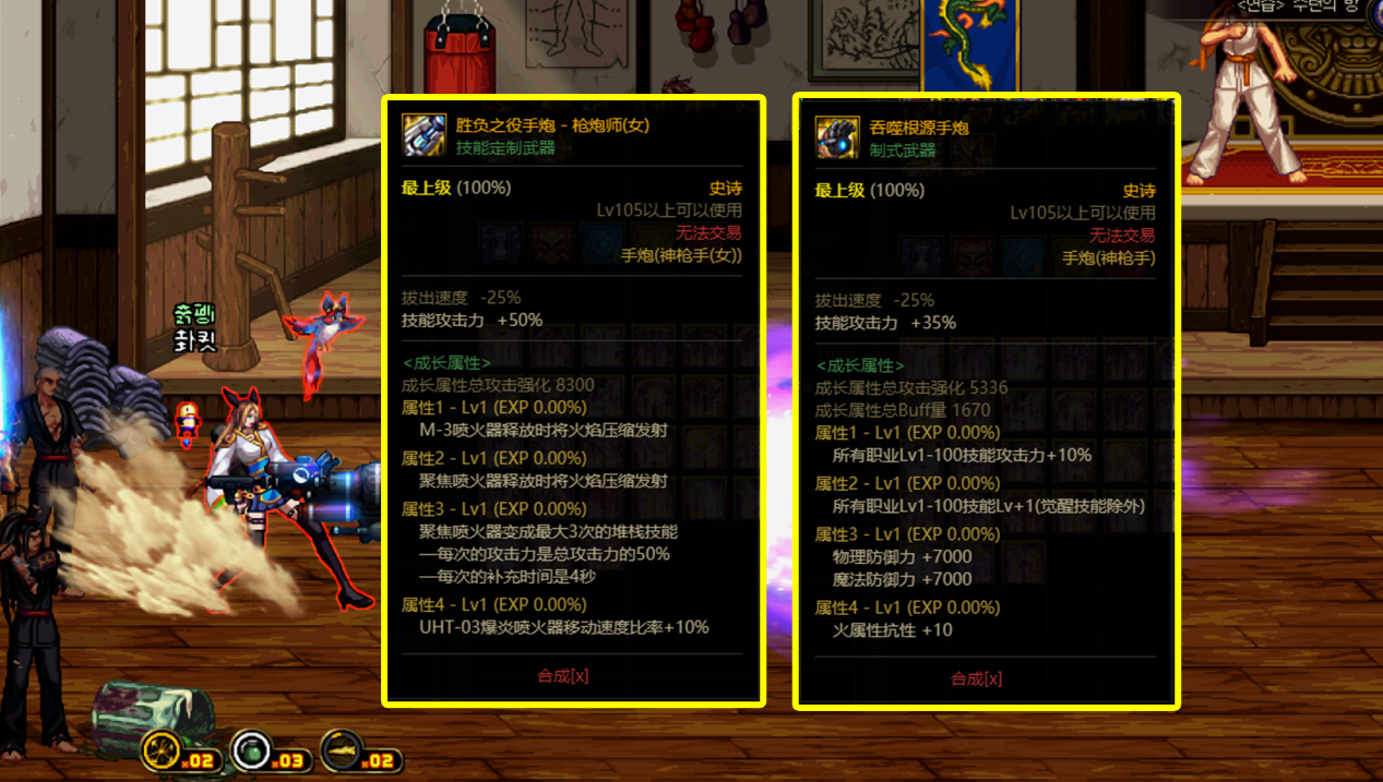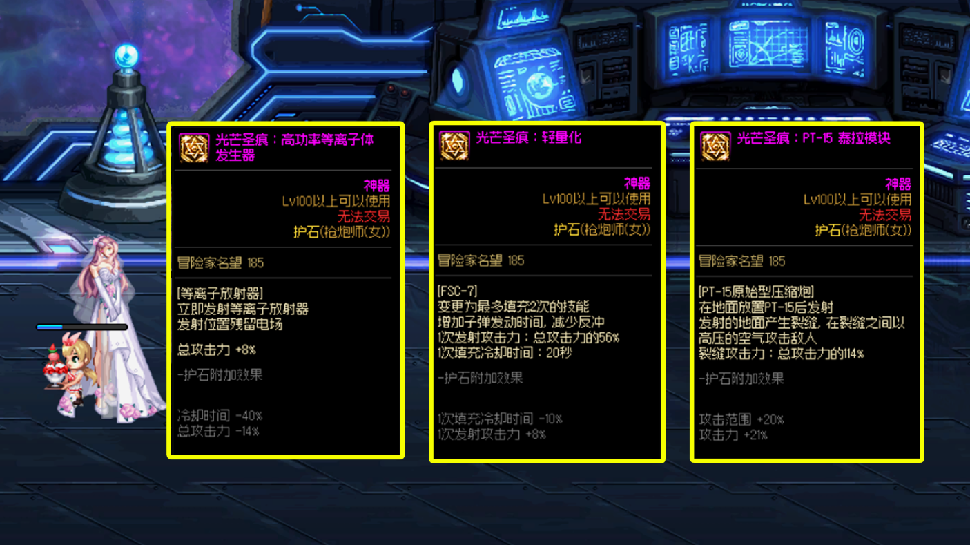 根源手炮属性和其他职业属性一致,35%的技攻,1-100级技能等级增加1级,提升10%的攻击力;CP武器为50%的技攻;从词条属性上对比差距不大,但CP武器的成长词条基础更高,其次是女大枪的CP武器变更了2个技能的形态,优化95级技能。