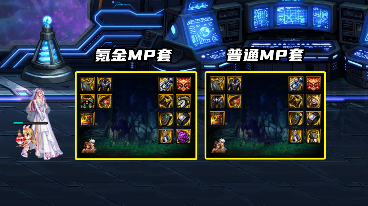 特殊装备:左槽没有机械战神前属性一般,考虑王小妹不往怪堆里跑,所以不推荐用灼伤左槽,优先选择无力化左槽;右槽氪金选20只宠物魔法石,不氪金选择MP魔法石;耳环首选无色耳环。