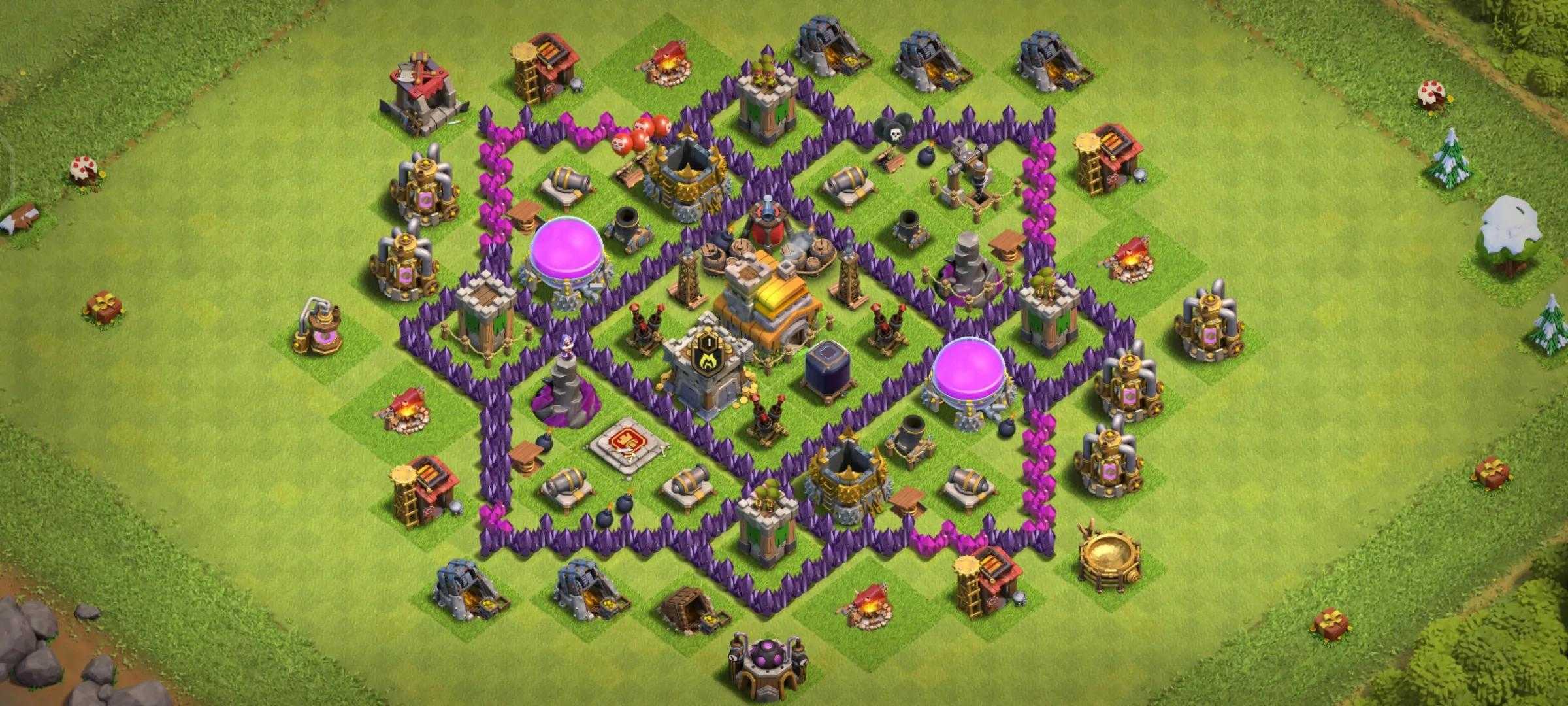 另一方面,七本对于空军的应用,包括龙球和猪球,都是强势打法,为了照顾这些流派,就需要兼顾防空。三火箭和空气炮的布置,以及巨炸(野猪克星)。