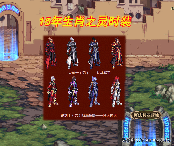 15年则是推出了“哮天神犬”的隐藏男鬼剑装扮,当时是1个很巧合的原因,因为主题是生肖之灵,但只有11个角色怎么办?于是男鬼剑就有了2套!分别是“斗战猴王”和“哮天神犬”,后者需要买3~4套才能获得。