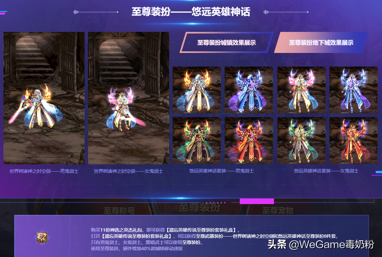 时机逐渐成熟,至尊时装开始从18年常驻!来源于新春兽人时装,而策划也逐渐掌握氪金密码,至尊装扮只给鬼剑士安排,关键花费极高,11套才能获得。