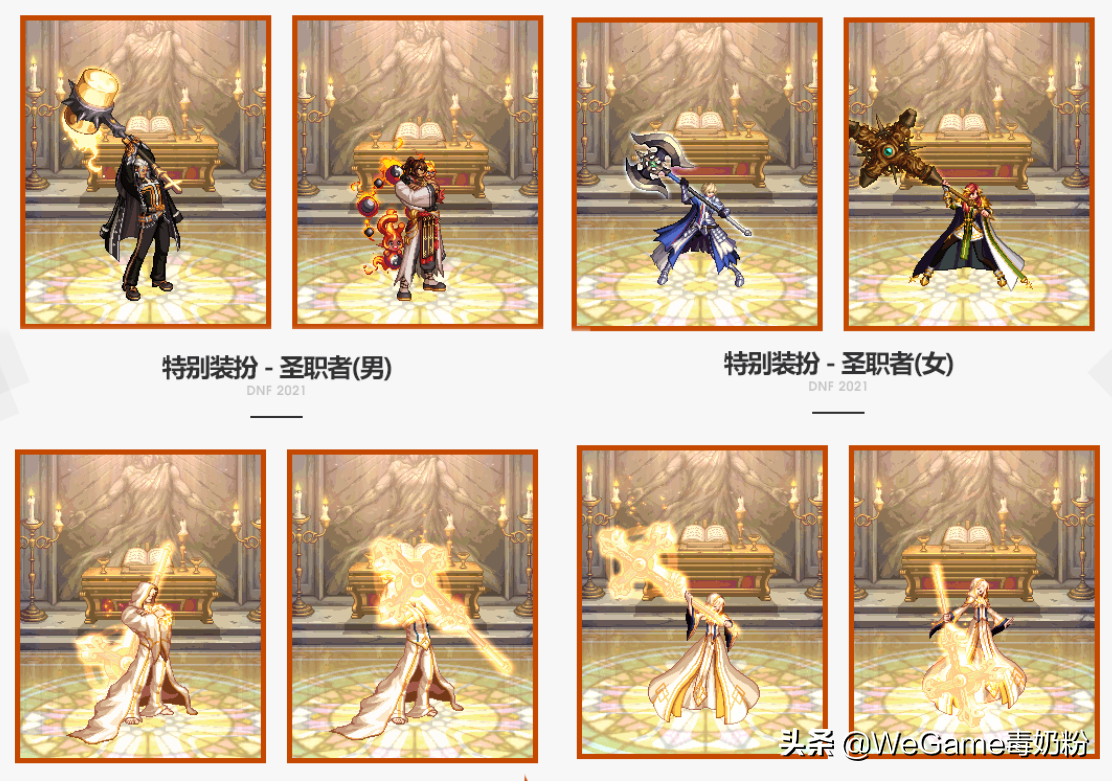 21年金秋特别装扮,策划终于不是给鬼剑士了!而是圣职者,金光闪闪的外观,关键这套时装可以交易!目前拍卖行都还有,跨3大区是3600W金币。