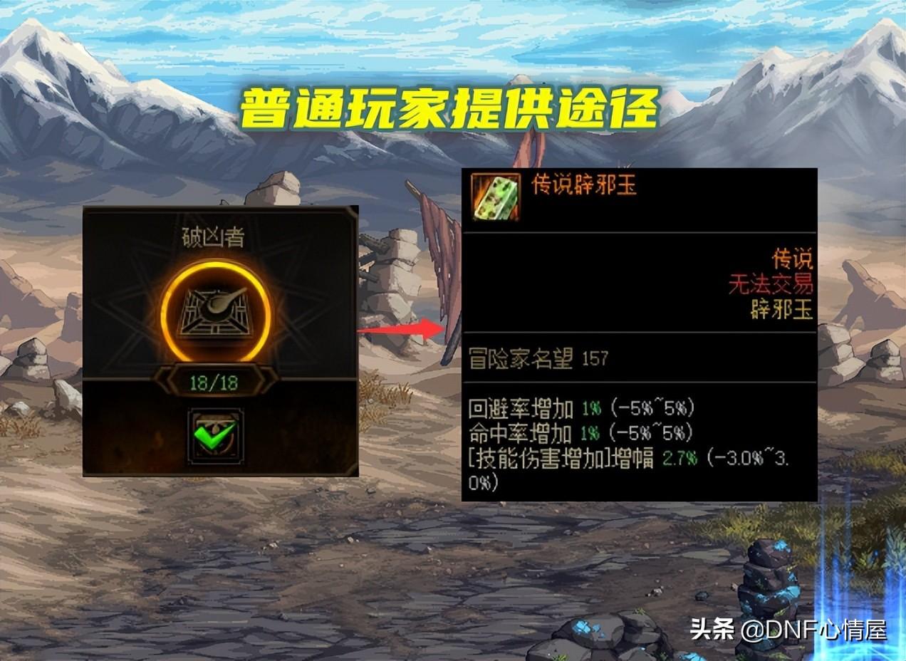 对于冒险团未央挑战任务“破凶者”,存在意义很大,特别是普通玩家,提供摸金技攻玉途径。你还别不信,如图所示的玩家,刚刚破凶任务完毕,就掉落一个传说辟邪玉,【技能伤害增加】增幅2.7%,可惜无法交易。但凡能够交易,这样的技攻辟邪玉,拍卖行保底几亿起步。