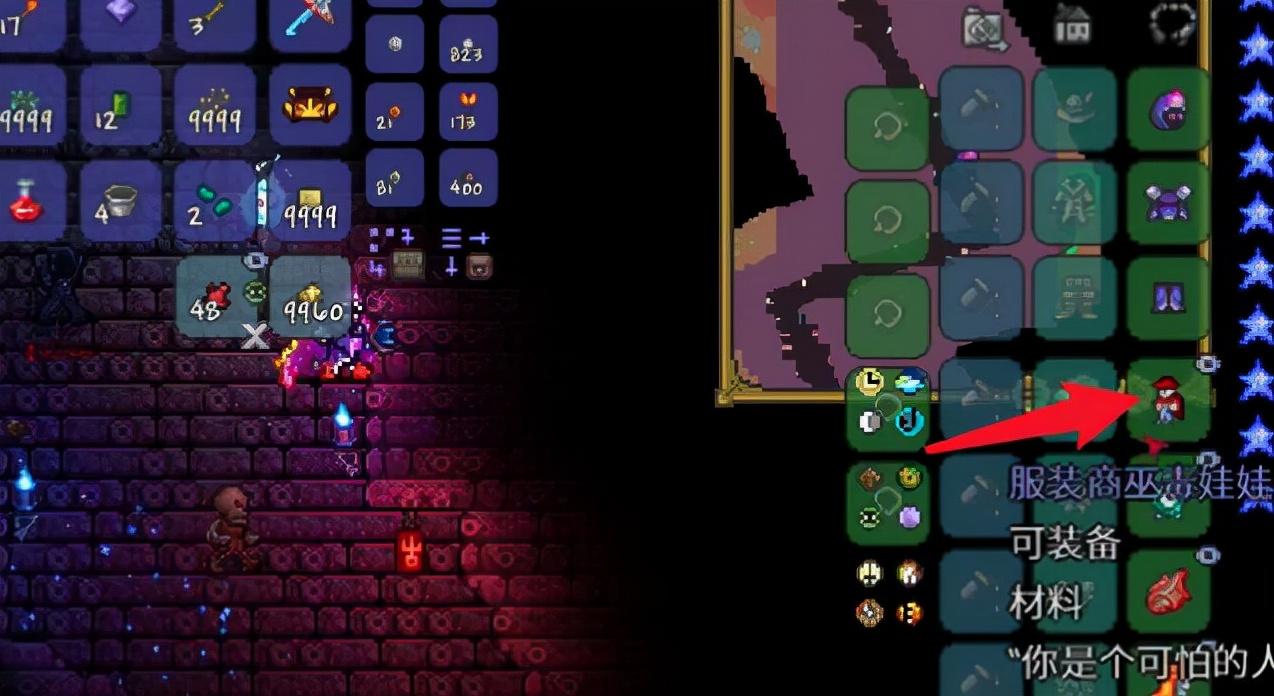 4、回到家里,找到服装商NPC,装备巫毒娃娃就能打他。