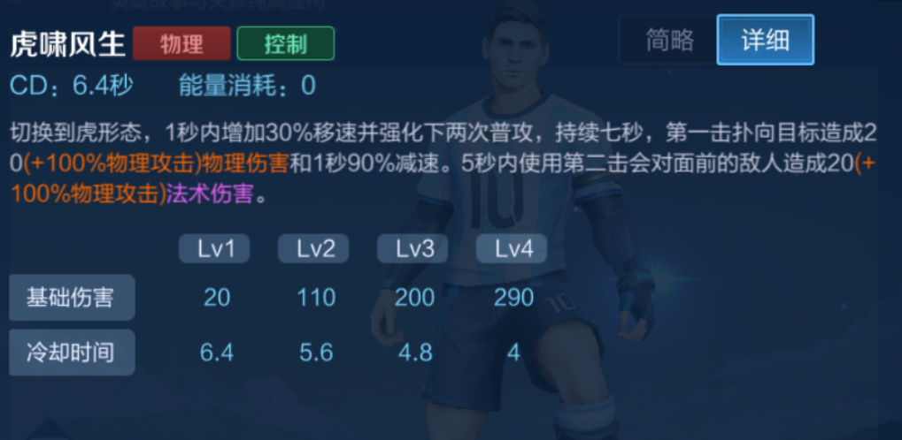 虎形态变为人形态,强化下次普攻,进行一次类似一技能的攻击,但没有减速效果。