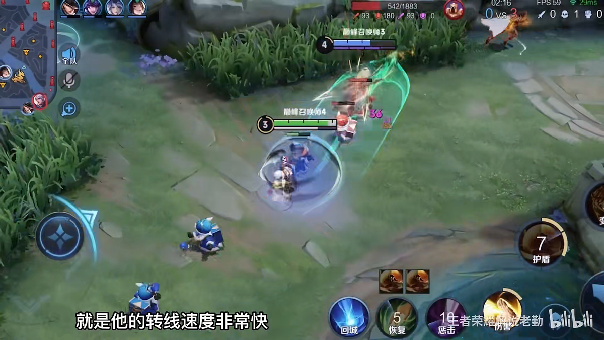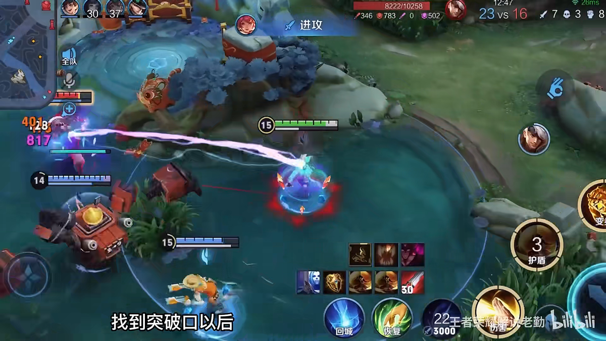 转战3线使用人形态的1技能和强化普攻消耗一下就走,利用二技能开护盾摸两下塔,尽可能为己方争取一点儿优势。