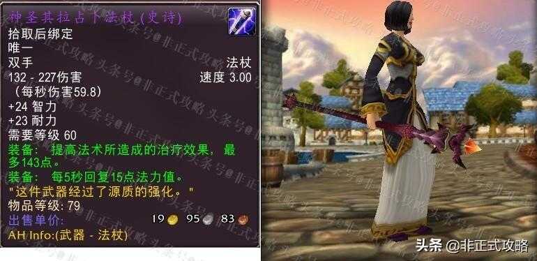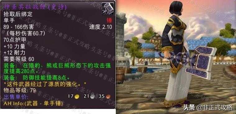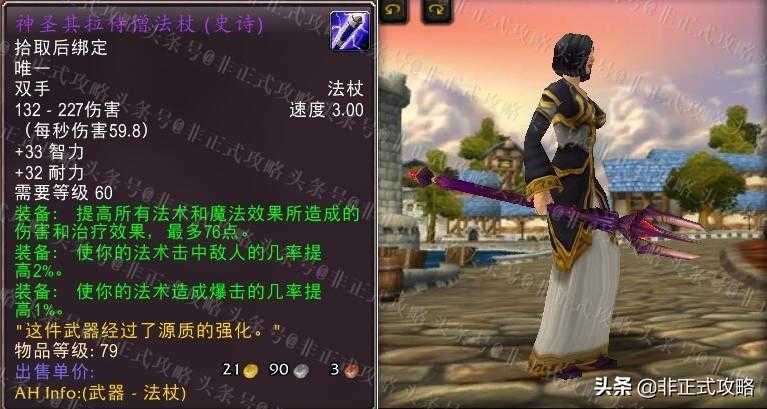 先来说一说【其拉帝王徽记】,这个物品可以换取三种武器,分别是:神圣其拉占卜法杖、神圣其拉侍僧法杖、神圣其拉战锤。看下面三个图片中展示的武器属性和造型。相比较之下,其拉帝王徽记比较适宜法系输出职业去换取侍僧法杖。如果在能够TAQ全通的进度前提下,建议治疗职业去拿克苏恩掉落的单手治疗锤子。