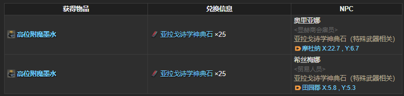打完小黄书以后就进入了+3阶段,这个时候又需要跑到摩杜纳花费75诗学购买3个高位附魔墨水。不过我并不确定这个东西如果是第一次做的话,能不能提前购买。所以这里建议最好是提前留个75点诗学用于购买高位附魔墨水。但是这并不是仅有一个,还有不少需求。