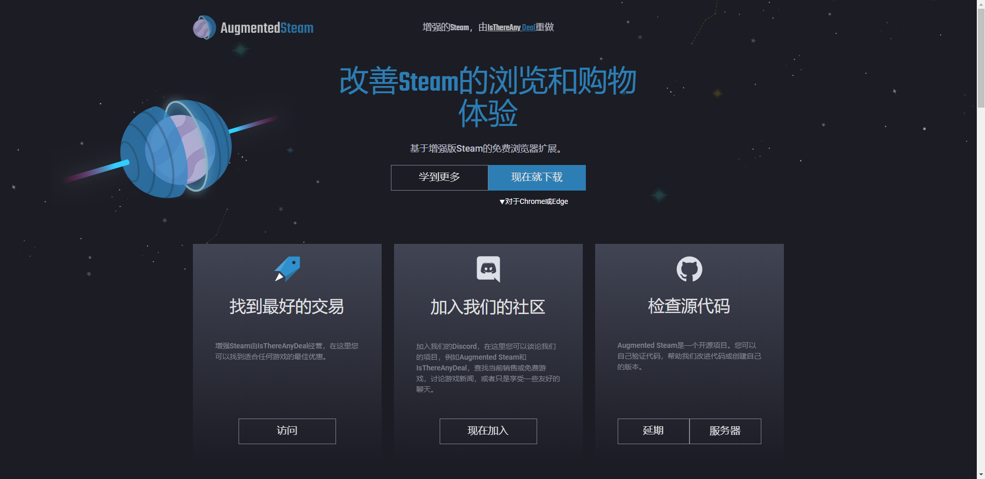 该插件前身为Enhanced Steam,Enhanced Steam是由国外开发者jshackles开发的浏览器插件,已经于2019年1月停止更新(看来用爱发电太辛苦了)之后这一项目被国外正规游戏折扣网站IsThereAnyDeal接手,接手之后更名为Augmented Steam。