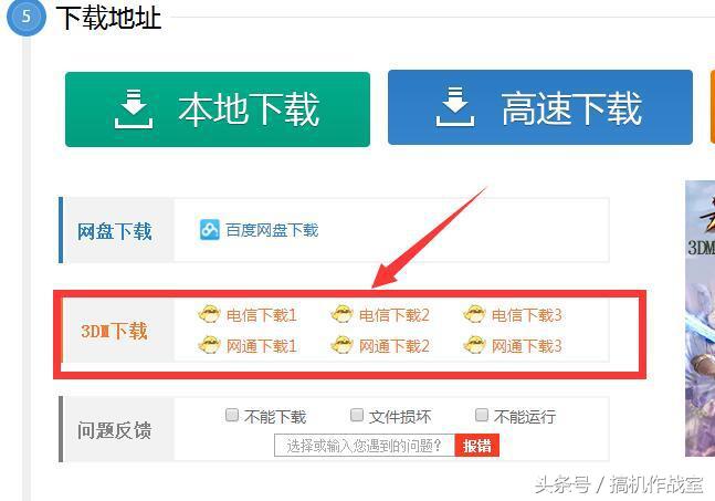 3、点击下载地址以后,页面会自动跳到下载地址所在位置;如图,我们点击3DM下载栏里面的六个下载即可。(6个下载地址任意点击其中一个下载即可)