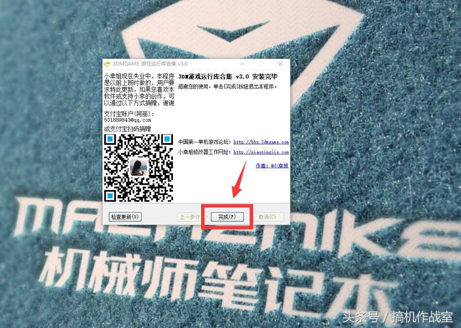 5、游戏组件安装完成以后,我们点击“完成”。这个时候,游戏组件就安装完成了。